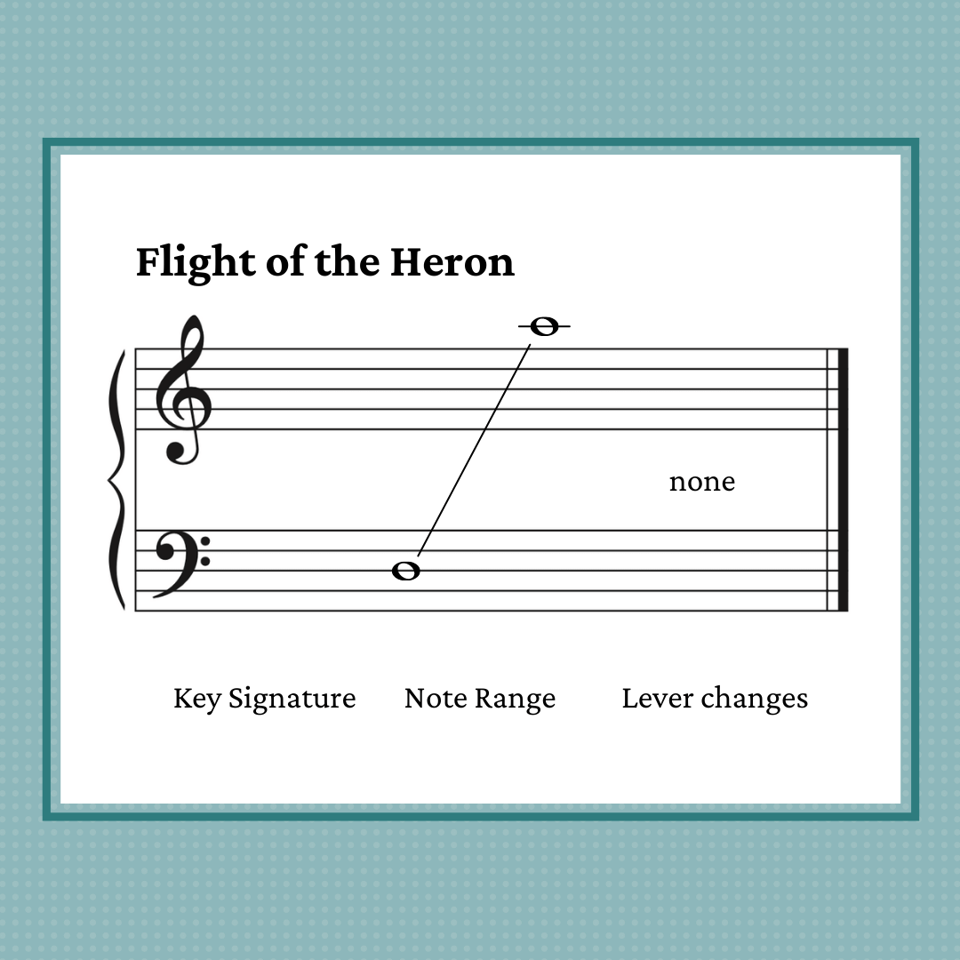 "Flight of the Heron" is fun to learn! Play it fast or slow to suit your mood and technical ability. The course is gently paced with step-by-step learning support. This piece uses simple patterns, so you'll be able to follow along with beginner technique and reading skills. I'll challenge you to memorize patterns and also improvise. You'll use a skilled blend of visual, aural and tactile learning styles to learn and memorize the patterns.